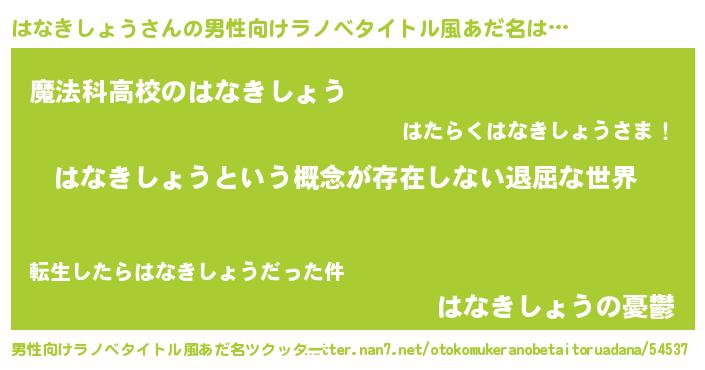 | ヘコむあだ名 | 『はなきしょう(笑)』『はなふぇ~』 |