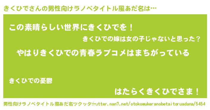 | 女子向けラノベタイトル風あだ名 | 『きくひでの雑貨屋さん』 |