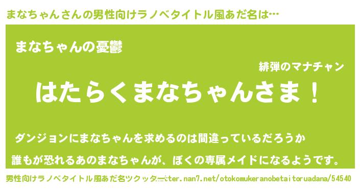 | ヘコむあだ名 | 『まなもー』『まなちゃん(苦笑)』 |