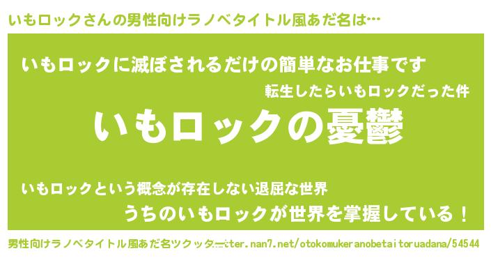 | 胡散臭い通販商品みたいなあだ名 | 『モテモテ間違いなし霊験あらたかなお札…その名も「いもロック」』 |