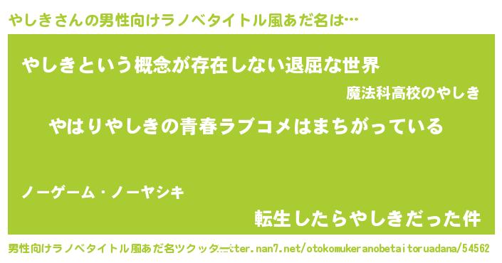 | ファンタジー風あだ名 | 『エターナルヤシキー』『ヤシディッシュ』 |