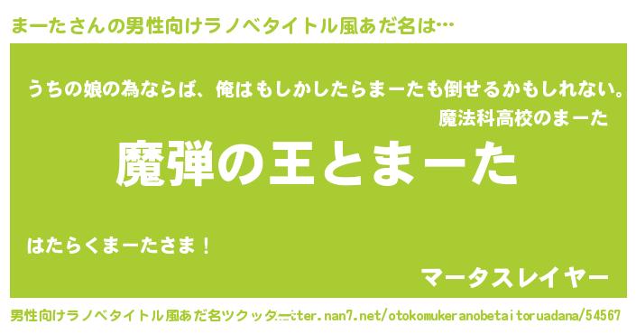 | 意味不明あだ名 | 『住所不定無職まーた(12歳)』『自称まーた』 |