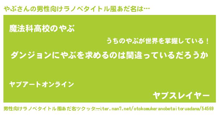 | ヘコむあだ名 | 『やぶお』『やぶにー』『やぶ(苦笑)』 |