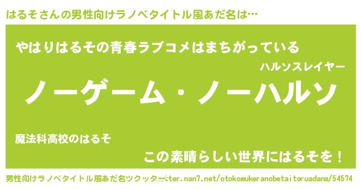 | ヒーロー風カッコイイあだ名 | 『慈愛の使者はるそ』『仮面ハルダー』 |
