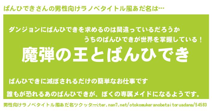 | 女子向けラノベタイトル風あだ名 | 『乙女ゲームの破滅フラグしかない悪役ばんひできに転生してしまった…』 |