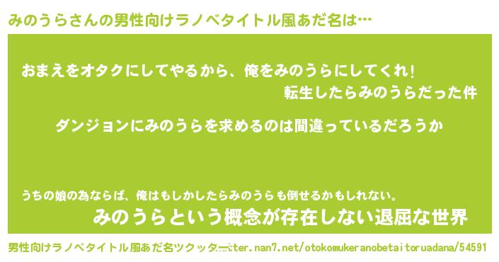 | ヘコむあだ名 | 『みのを』『みのうら(遠い目)』 |