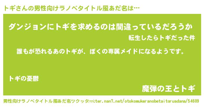 | ヘコむあだ名 | 『トギ(苦笑)』『トギぷりん』『豆乳』 |
