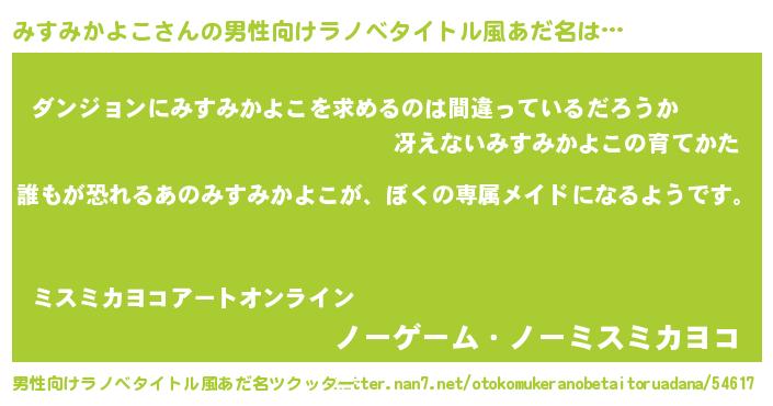 | ヘコむあだ名 | 『みすみかよこ(笑)』『みすお』 |