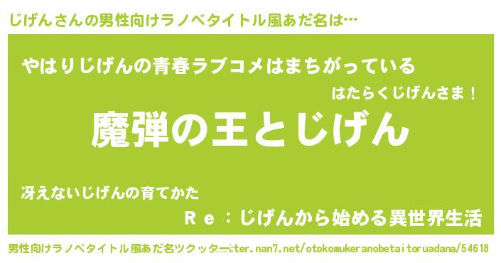 | ヒーロー風カッコイイあだ名 | 『仮面ジゲダー』『ウルトラじげんマン』 |