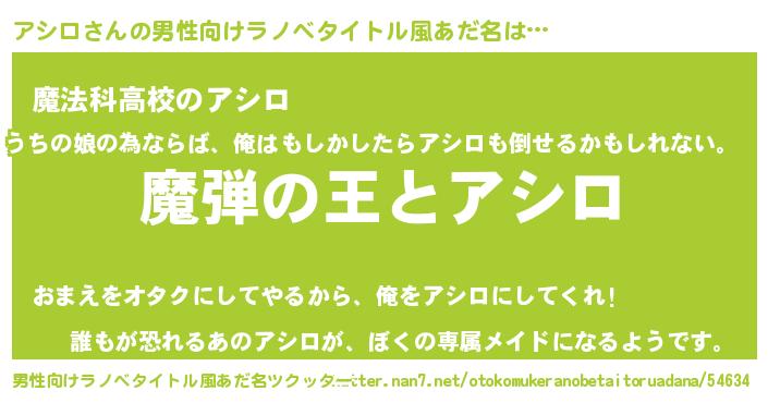| ヒーロー風カッコイイあだ名 | 『仮面アシダー』『サイバー戦士アシロ』 |