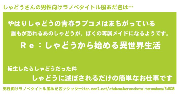| 女子向けラノベタイトル風あだ名 | 『闇のしゃどう』『しゃどう伯爵の花嫁』 |