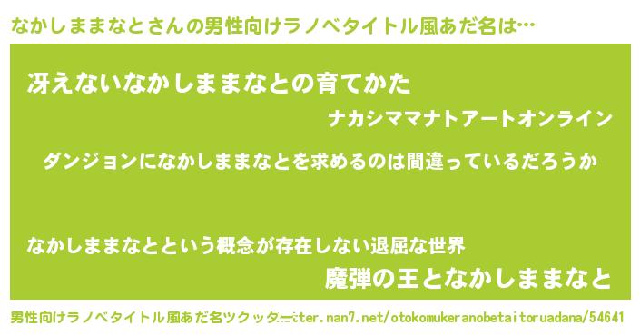 | 女子向けラノベタイトル風あだ名 | 『なかしままなとは平凡を望む』 |