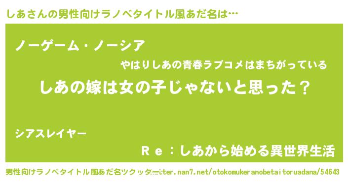 | 女子向けラノベタイトル風あだ名 | 『しあ様がみてる』『しあ恋絵巻』 |