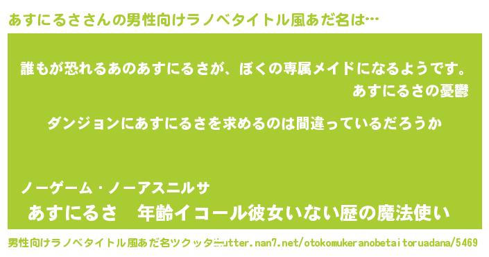 | 意味不明あだ名 | 『とにかく怪しいあすにるさ』 |