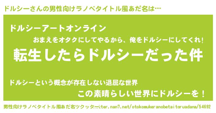 | 胡散臭い通販商品みたいなあだ名 | 『モテモテ間違いなし霊験あらたかなお札…その名も「ドルシー」』 |
