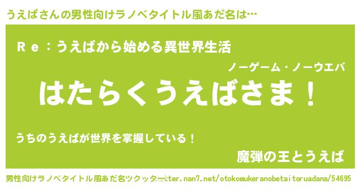 | 意味不明あだ名 | 『自称うえば』『住所不定無職うえば(50歳)』 |