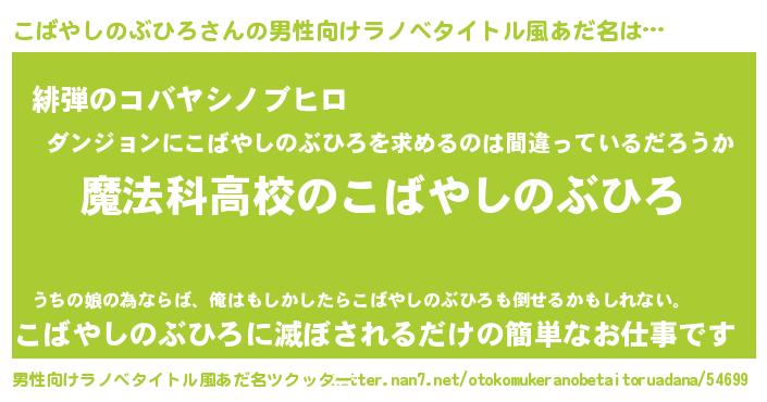 | 胡散臭い通販商品みたいなあだ名 | 『テレビで話題の高麗人参…その名も「こばやしのぶひろ」』 |