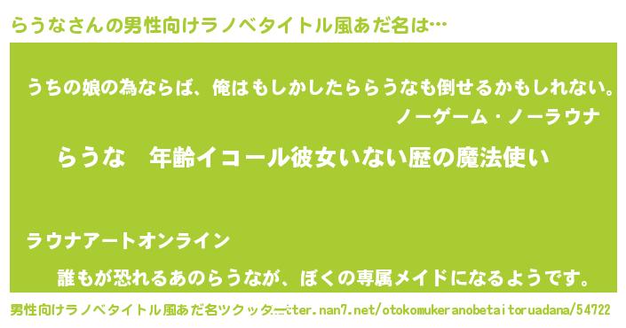 | ヒーロー風カッコイイあだ名 | 『ウルトラらうなマン』『ネオラウナ』 |