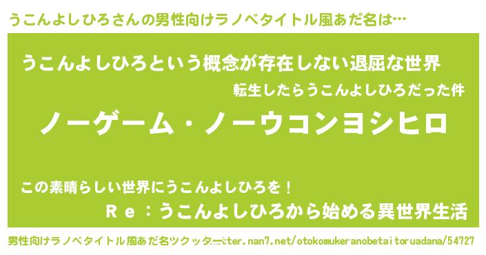 | 女子向けラノベタイトル風あだ名 | 『うこんよしひろ恋絵巻』 |