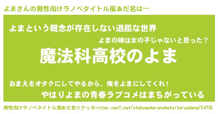 | ヘコむあだ名 | 『よま(笑)』『牛乳』『よまお』 |