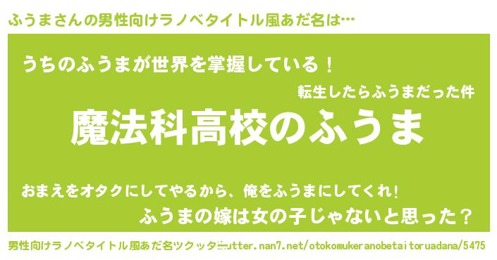 | 女子向けラノベタイトル風あだ名 | 『ふうまなんてお断りですっ。』 |