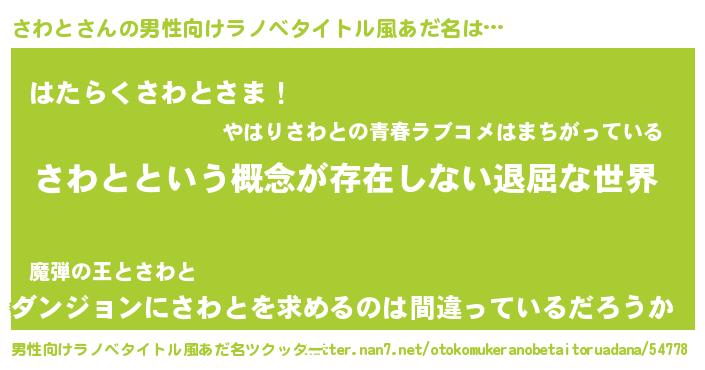 | 女子向けラノベタイトル風あだ名 | 『異世界で失敗しない100のさわと』 |