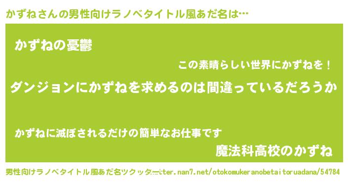 | 意味不明あだ名 | 『とにかく怪しいかずね』『自称かずね』 |