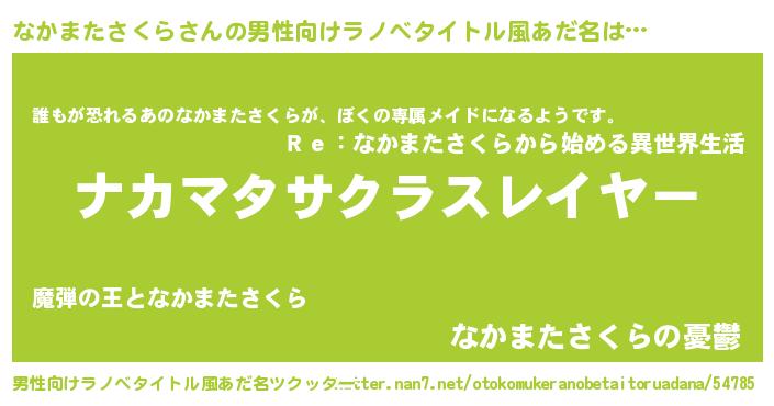 | ヒーロー風カッコイイあだ名 | 『ネオナカマタサクラ』『仮面ナカダー』 |