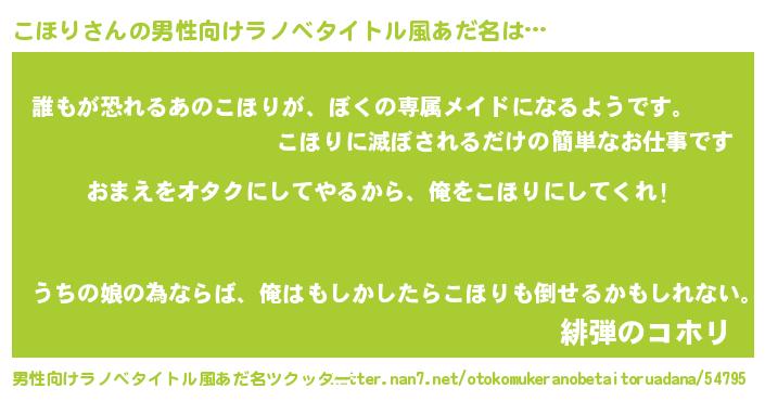| ヘコむあだ名 | 『こほり(遠い目)』『なまこ酢』 |