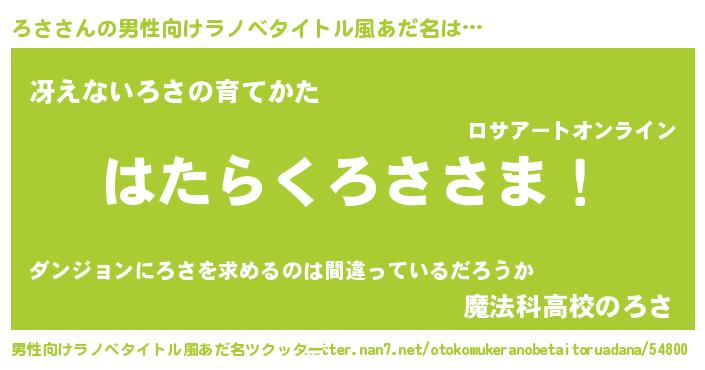 | 胡散臭い通販商品みたいなあだ名 | 『ガンによく効く高麗人参…その名も「ろさ」』 |