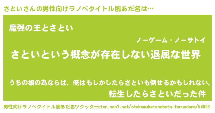 | 女子向けラノベタイトル風あだ名 | 『異世界で失敗しない100のさとい』 |