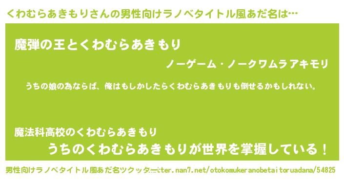 | ファンタジー風あだ名 | 『エターナルクワムラアキモリー』 |