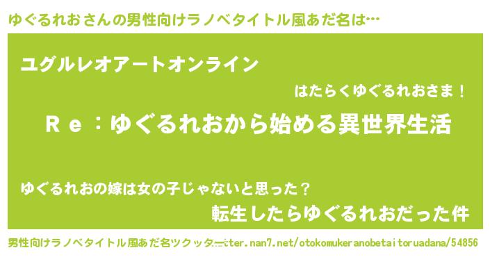 | 女子向けラノベタイトル風あだ名 | 『ゆぐるれおストレイドッグス』 |