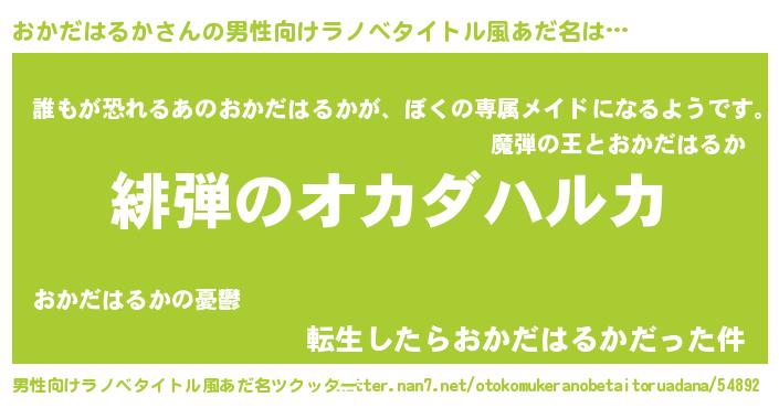 | 胡散臭い通販商品みたいなあだ名 | 『絶対に幸福をもたらす健康食品…その名も「おかだはるか」』 |