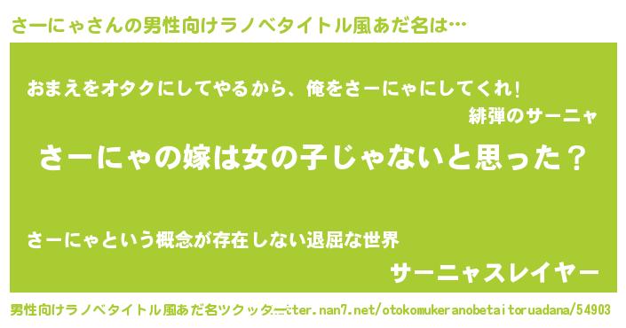| 胡散臭い通販商品みたいなあだ名 | 『伝統あるサプリメント…その名も「さーにゃ」』 |