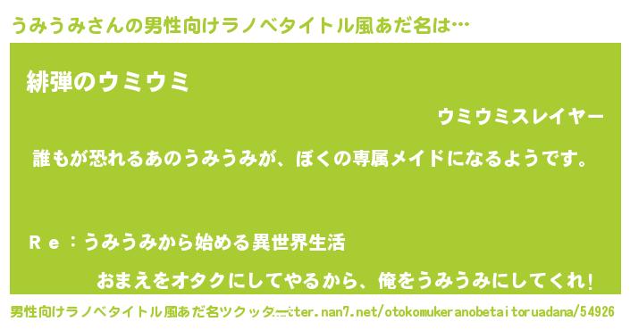| 女子向けラノベタイトル風あだ名 | 『異世界でカフェうみうみを開店しました。』 |