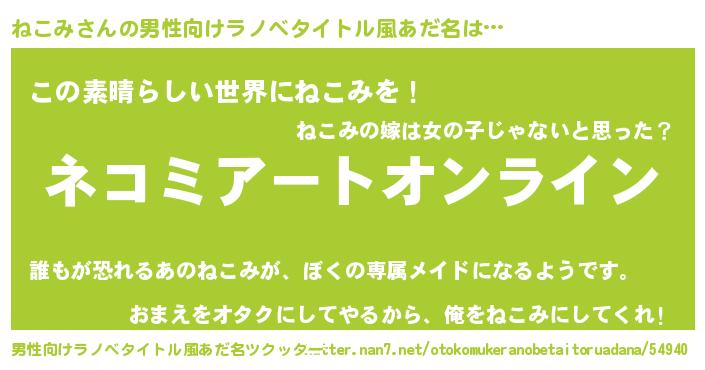 | 女子向けラノベタイトル風あだ名 | 『誰かこのねこみを説明してください! ~契約から始まるウェディング~』 |