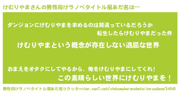 | 意味不明あだ名 | 『永久保存けむりやま』 |