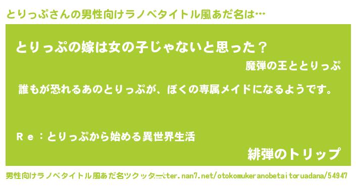 とりっぷさんの男性向けラノベタイトル風あだ名をツクッター!