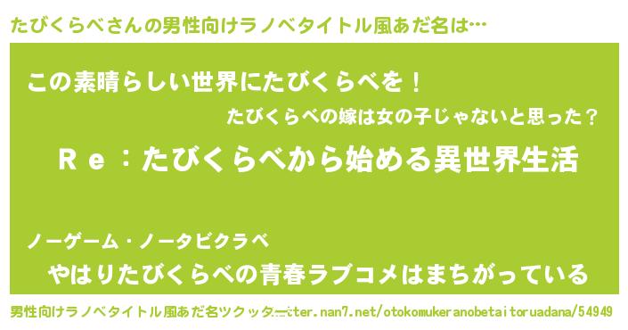 | 女子向けラノベタイトル風あだ名 | 『闇のたびくらべ』 |