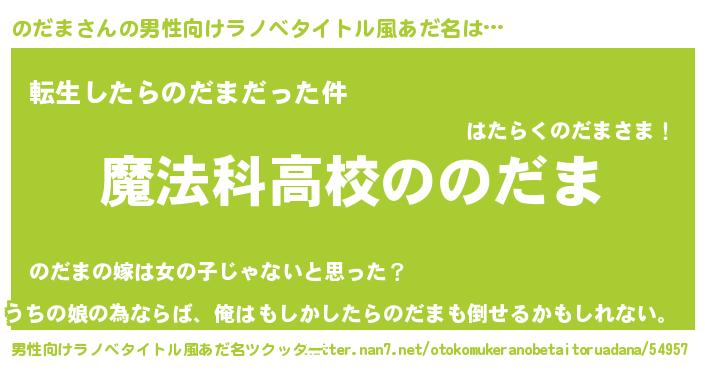 | 女子向けラノベタイトル風あだ名 | 『のだまアンティーク』『のだまの婚約者』 |