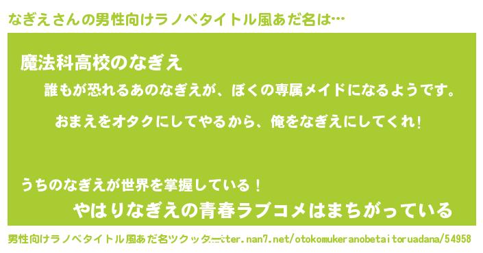 | 胡散臭い通販商品みたいなあだ名 | 『100人中100人が認めたマグネット磁石…その名も「なぎえ」』 |