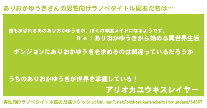 | 女子向けラノベタイトル風あだ名 | 『ありおかゆうきは平凡を望む』 |