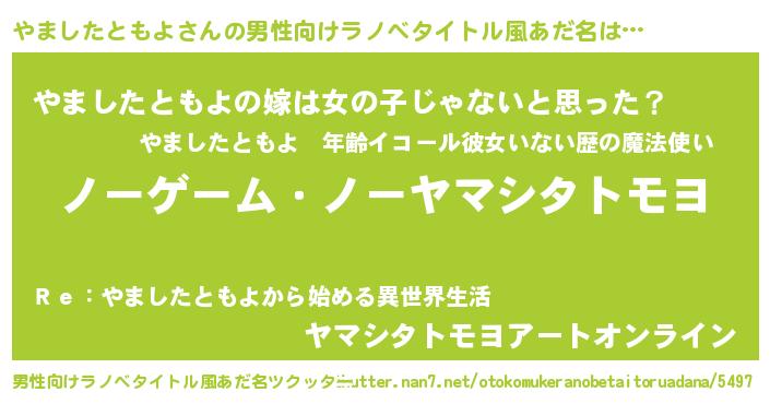 | 女子向けラノベタイトル風あだ名 | 『死神やましたともよの再婚』 |