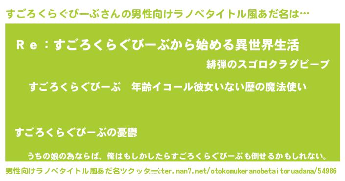 | 女子向けラノベタイトル風あだ名 | 『すごろくらぐびーぶの玉の輿計画!』 |