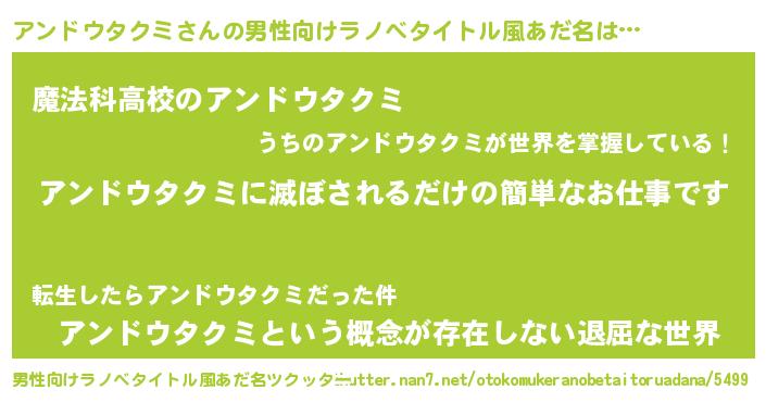 アンドウタクミさんの男性向けラノベタイトル風あだ名をツクッター!