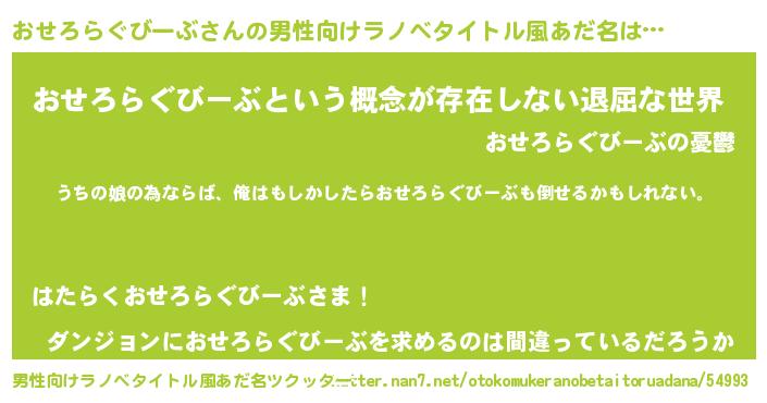 | 胡散臭い通販商品みたいなあだ名 | 『運命の人と巡り会える高級そうな絵画…その名も「おせろらぐびーぶ」』 |