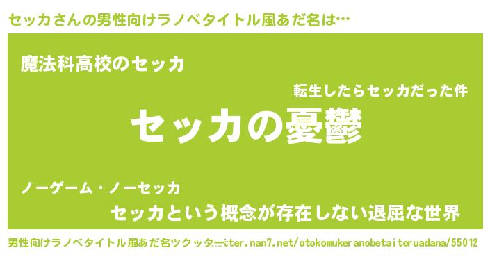 | 胡散臭い通販商品みたいなあだ名 | 『必ず成功するブレスレット…その名も「セッカ」』 |
