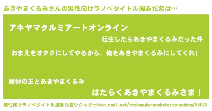 女子向けラノベタイトル風あだ名 | 『あきやまくるみ夫妻のなれそめ』 |