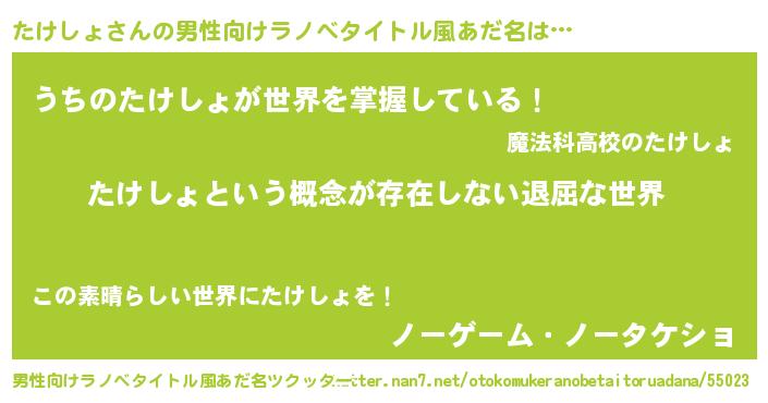| 意味不明あだ名 | 『永久保存たけしょ』『自称たけしょ』 |